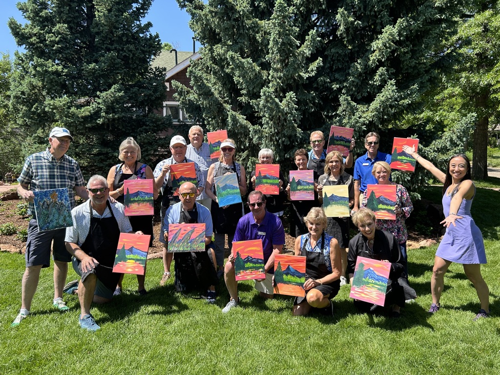 Day two unfolded with a spirit of adventure and artistry. Attendees enjoyed a guided hike through Chautauqua’s scenic trails, followed by a creative painting session that captured Colorado’s vibrant landscapes. That evening, the group gathered at Flagstaff House for an elegant dinner, where award-winning cuisine was paired with sweeping mountain views—an ideal moment of connection and celebration.